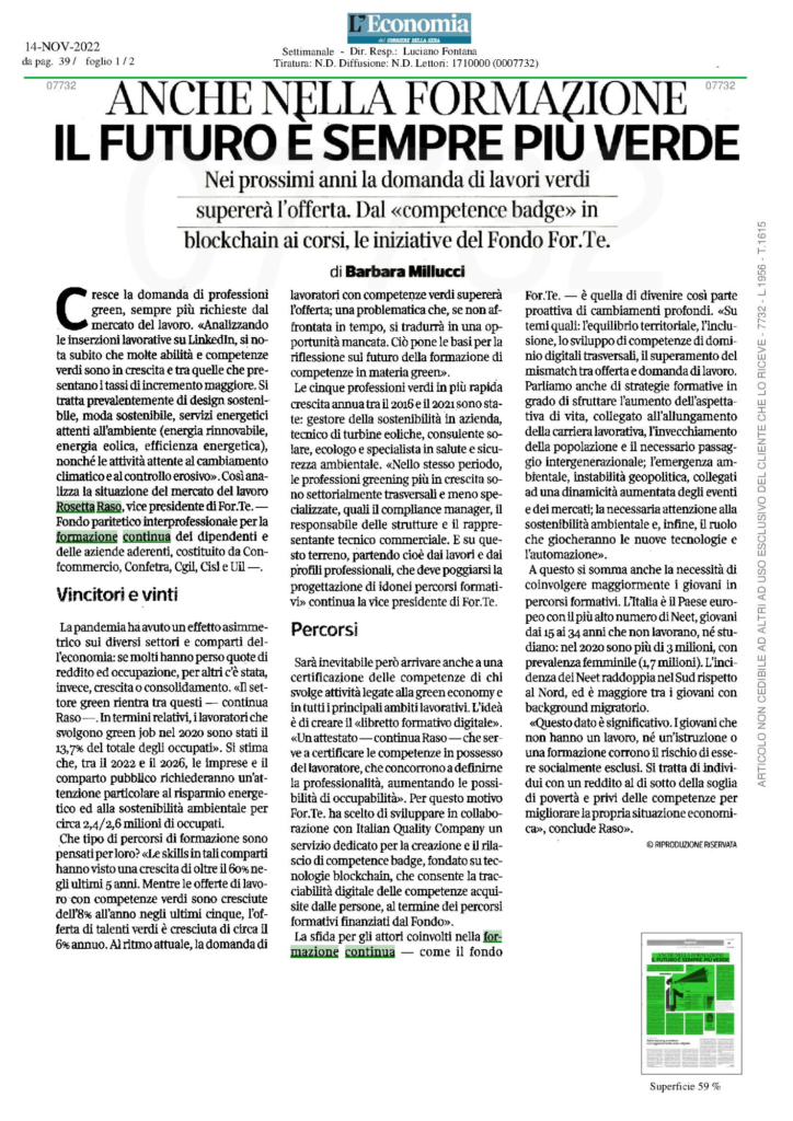Anche nella formazione il futuro è sempre più verde Pubblicato il14/11/2022 L’Economia del Corriere della Sera – 14 Novembre Invito 3/25 e Avviso 3/25 Catalogo Voucher 11/12/202511/12/2025 Avviso 3/25 11/12/202511/12/2025 Invito 3/25 11/12/202511/12/2025 Pubblicati gli elenchi dei Piani finanziati- Avviso 2/25 Politiche attive 10/12/202510/12/2025 Affidamento del servizio di connettività con fibra per la sede del Fondo 01/12/202501/12/2025 Faq Avviso 2/25 POLITICHE ATTIVE 19/11/202519/11/2025