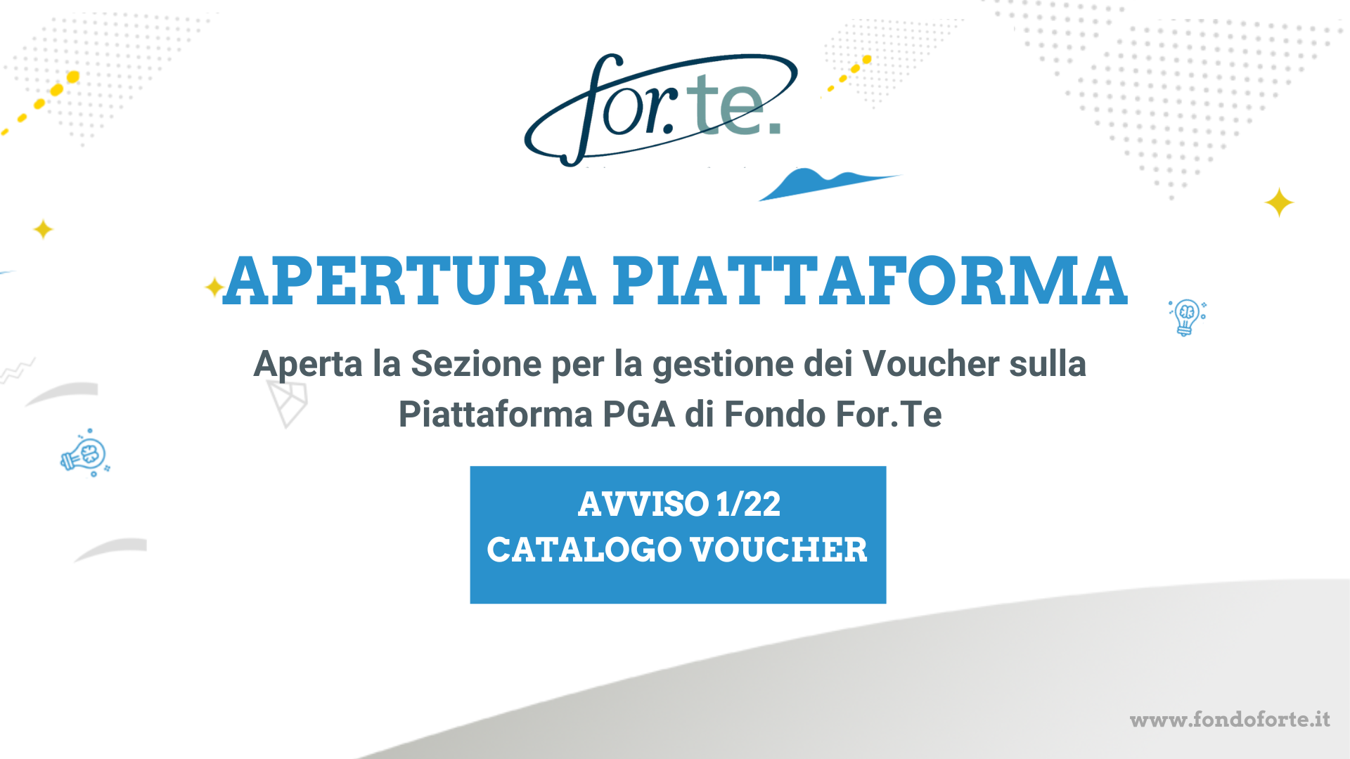 Si comunica che è stata aperta la Sezione per la gestione dei Voucher relativi all’Avviso 1/22 sulla Piattaforma PGA di Fondo For.Te.