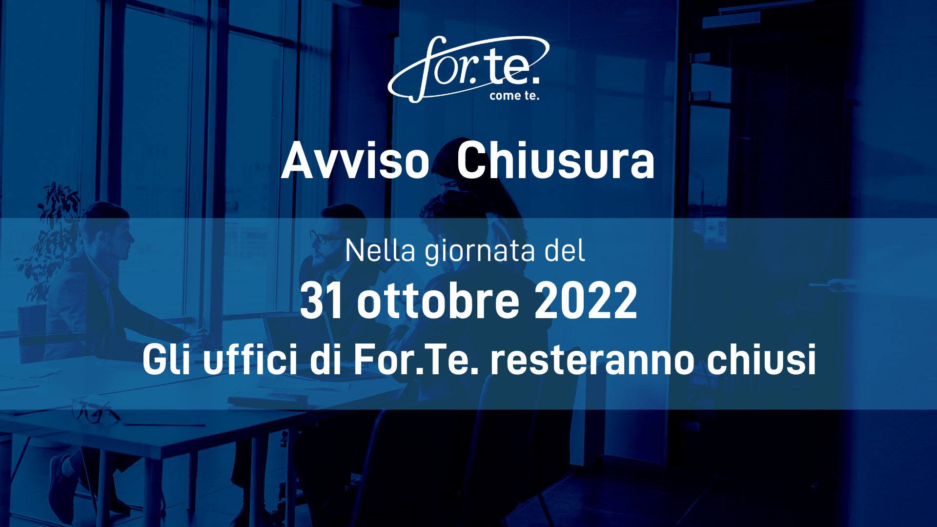 Si informa che gli uffici del Fondo For.Te. resteranno chiusi nella giornata del 31 ottobre 2022.