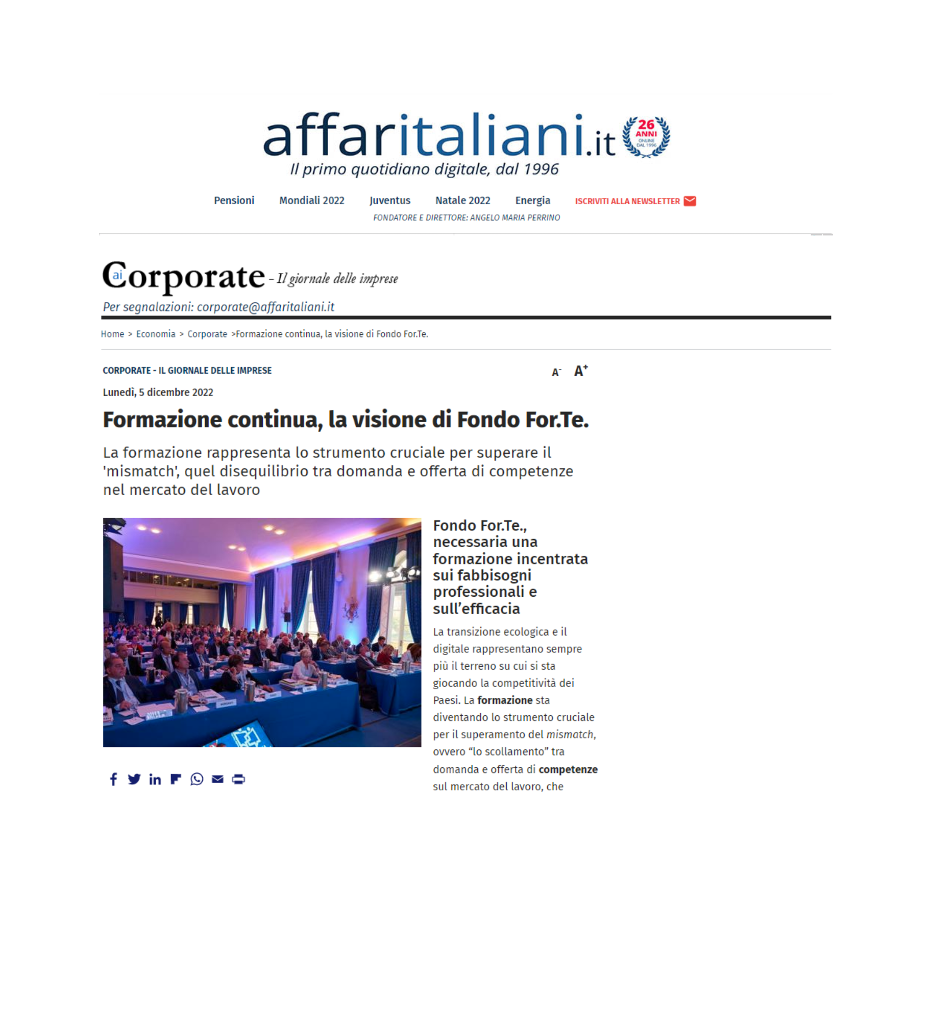 Formazione Continua, la visione di Fondo For.Te. Pubblicato il06/12/2022 Leggi l’articolo su affaritaliani.it Formazione cruciale per PMI e lavoratori 05/10/202301/12/2023 Formazione, dote da 1 miliardo. Al centro le competenze digitali 07/12/202201/12/2023 Ripensare la formazione continua in un mondo che cambia 06/12/202201/12/2023 Qualità garantita con rating, performance e tecnologia 29/11/202201/12/2023 Dossier Formazione Continua – Digitale e ambiente, la transizione è il pilastro della Formazione Continua 29/11/202201/12/2023 Le Competenze Corrette Sono Centrali 29/11/202201/12/2023