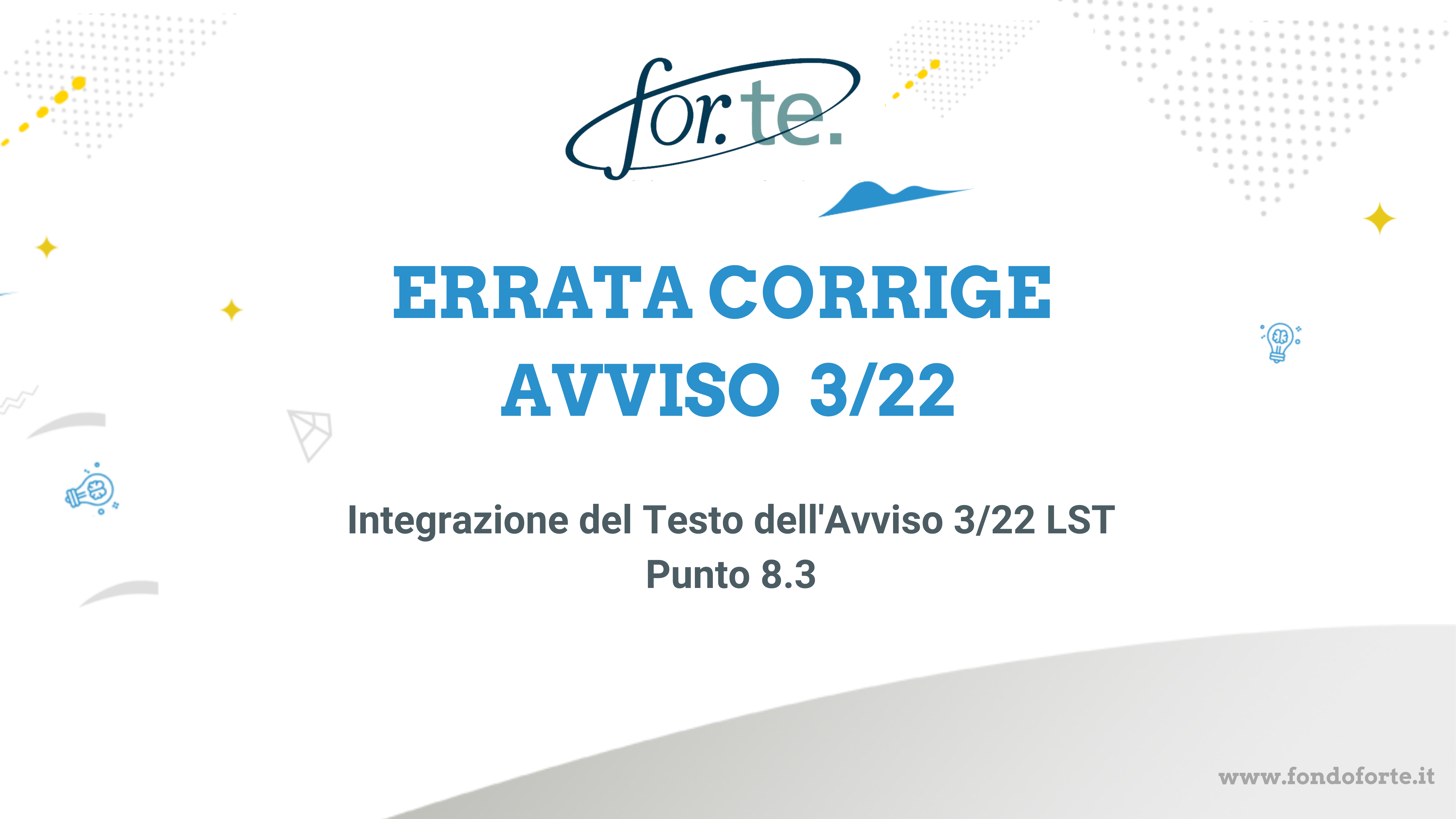 Nella sezione dedicata all’Avviso 3/22 è pubblicata tra la documentazione, l’errata corrige relativa al Punto 8.3 “Importi massimi richiedibili per tipologia di Piani in applicazione del Sistema di rating”.