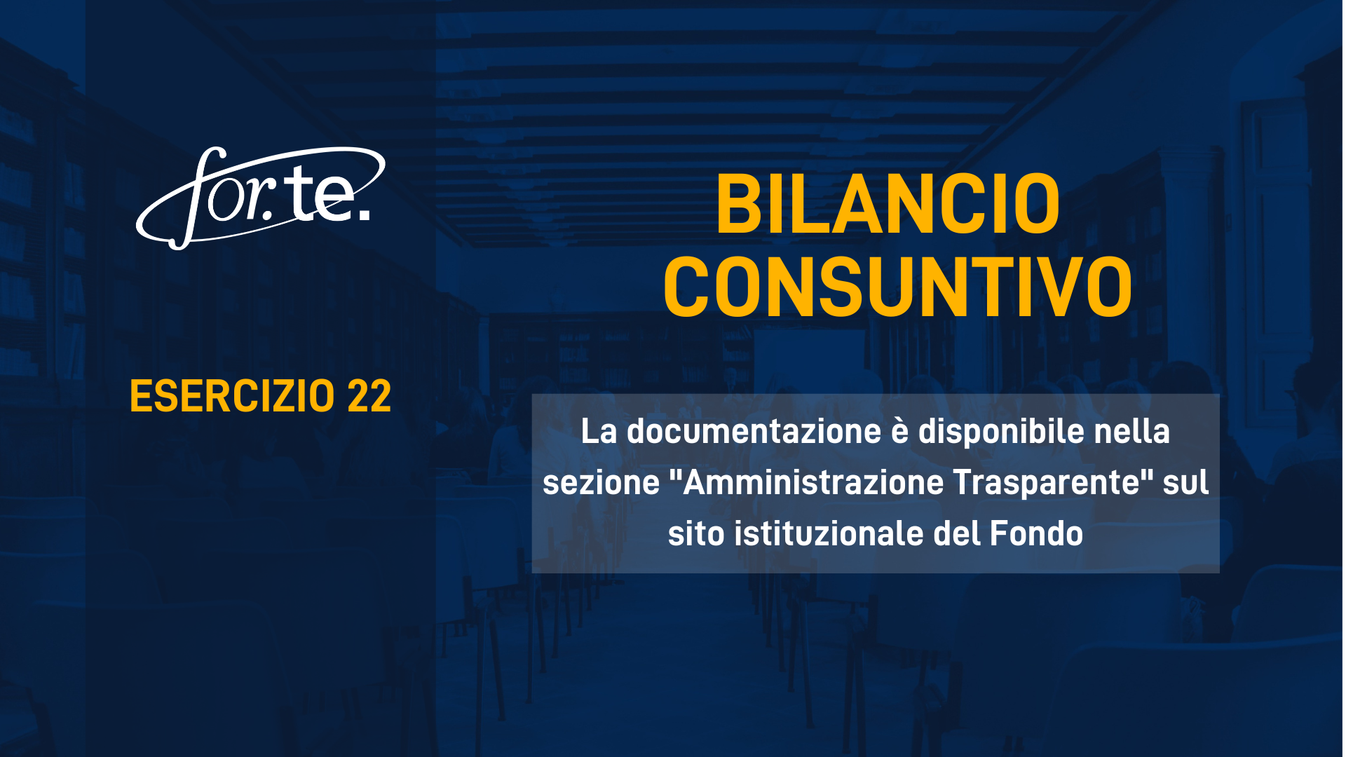 Si comunica che nella sezione Amministrazione trasparente > Bilanci e prospetti finanziari annuali sono stati pubblicati i documenti relativi al Bilancio consuntivo 2022 approvato dall’Assemblea di For.Te. in data 28 Aprile.