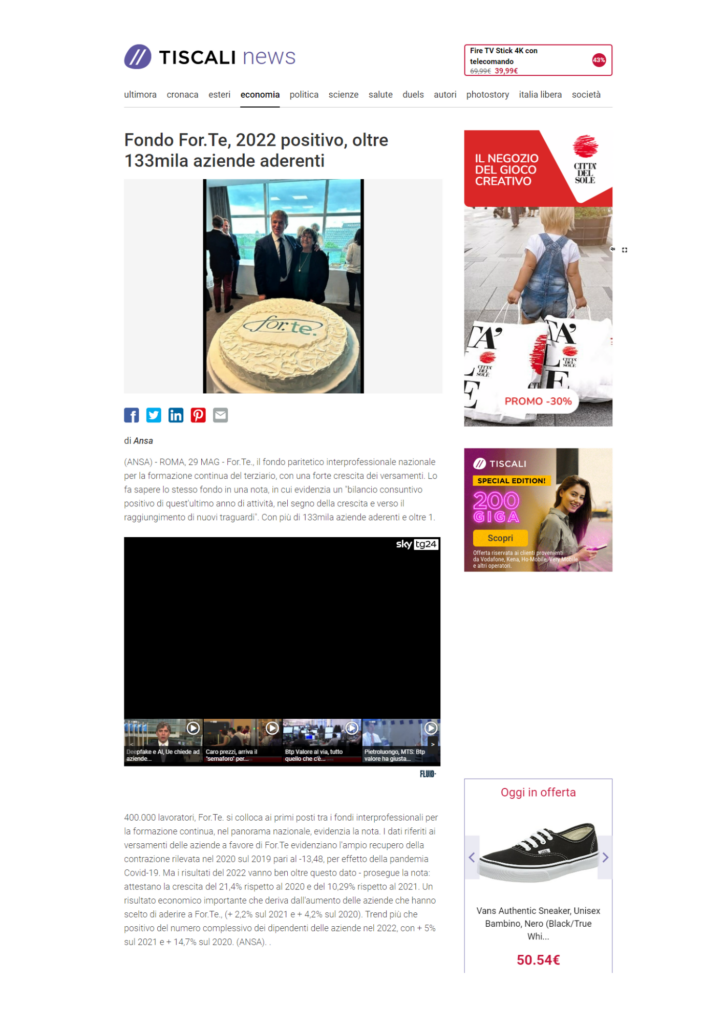 Fondo For.Te., 2022 positivo, oltre 133mila aziende aderenti Pubblicato il30/05/2023 Leggi l’articolo su tiscali.it