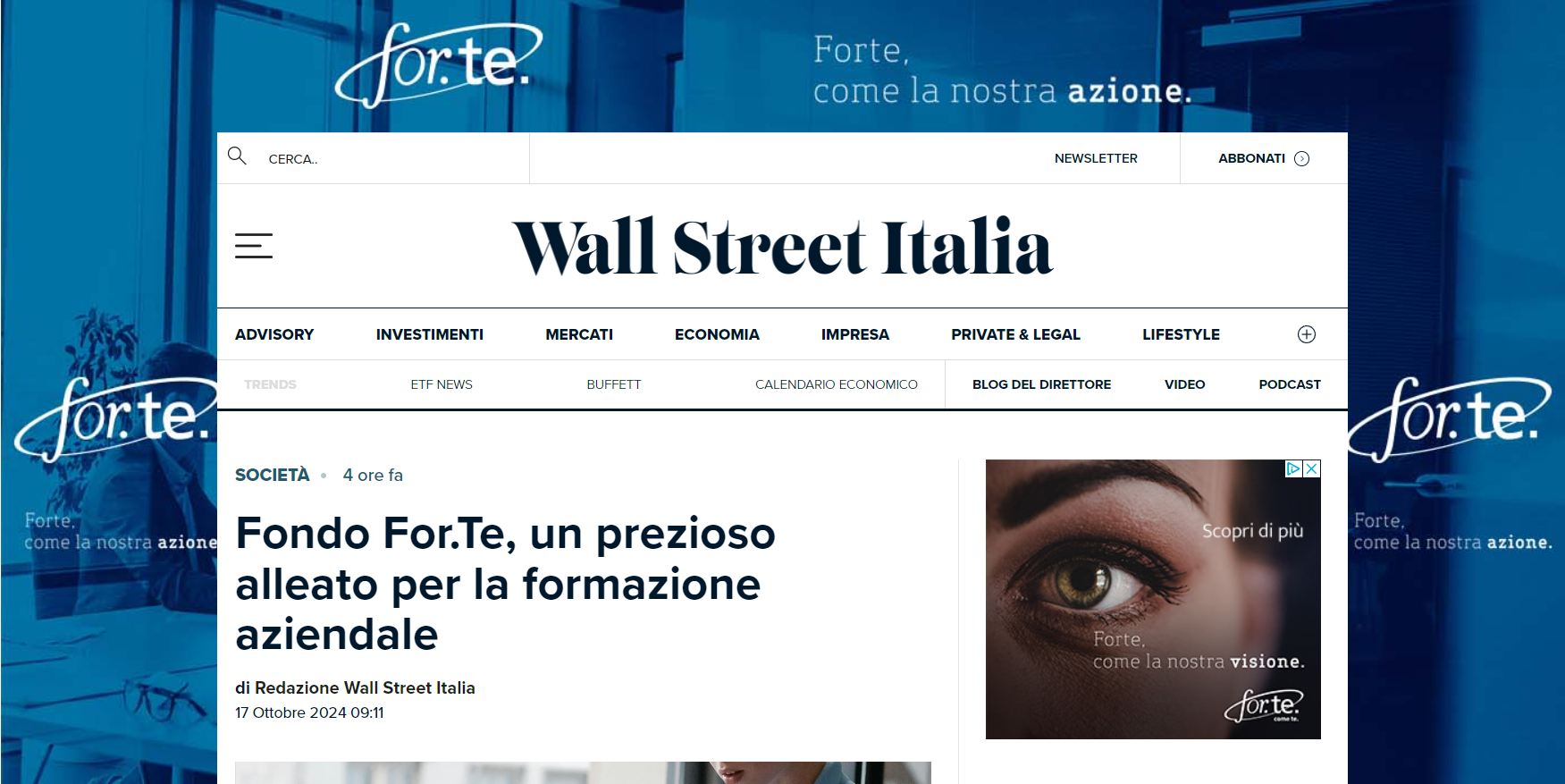 Fondo For.Te, un prezioso alleato per la formazione aziendale Pubblicato il17/10/2024 Wall Street Italia