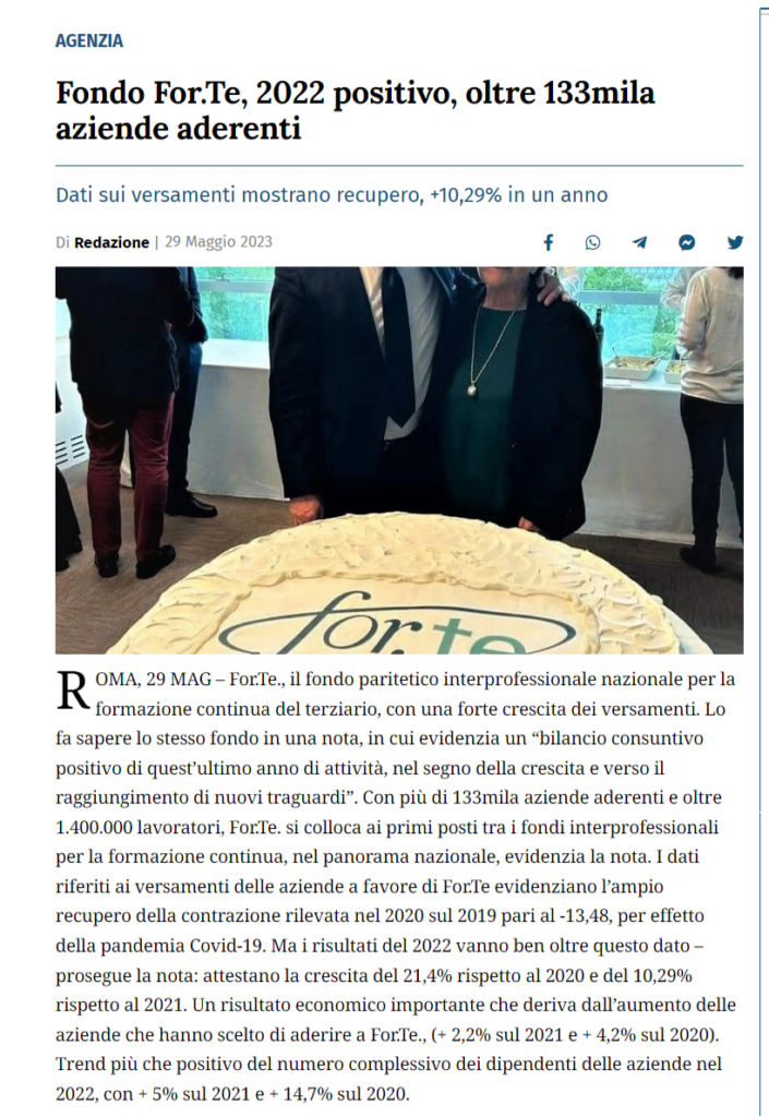 For.Te., 2022 positivo, oltre 133mila aziende aderenti Pubblicato il30/05/2023 Leggi l’articolo su lasicilia.it