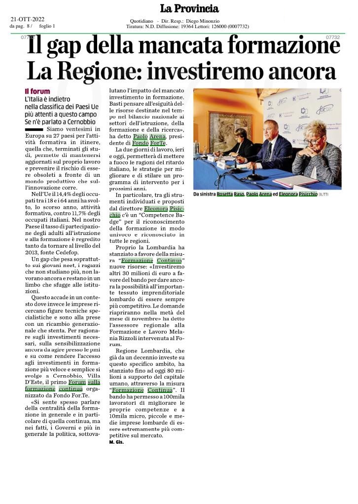 Il gap della mancata formazione. La Regione: investiremo ancora Pubblicato il21/10/2022 La Provincia – 20 Ottobre Nessun articolo