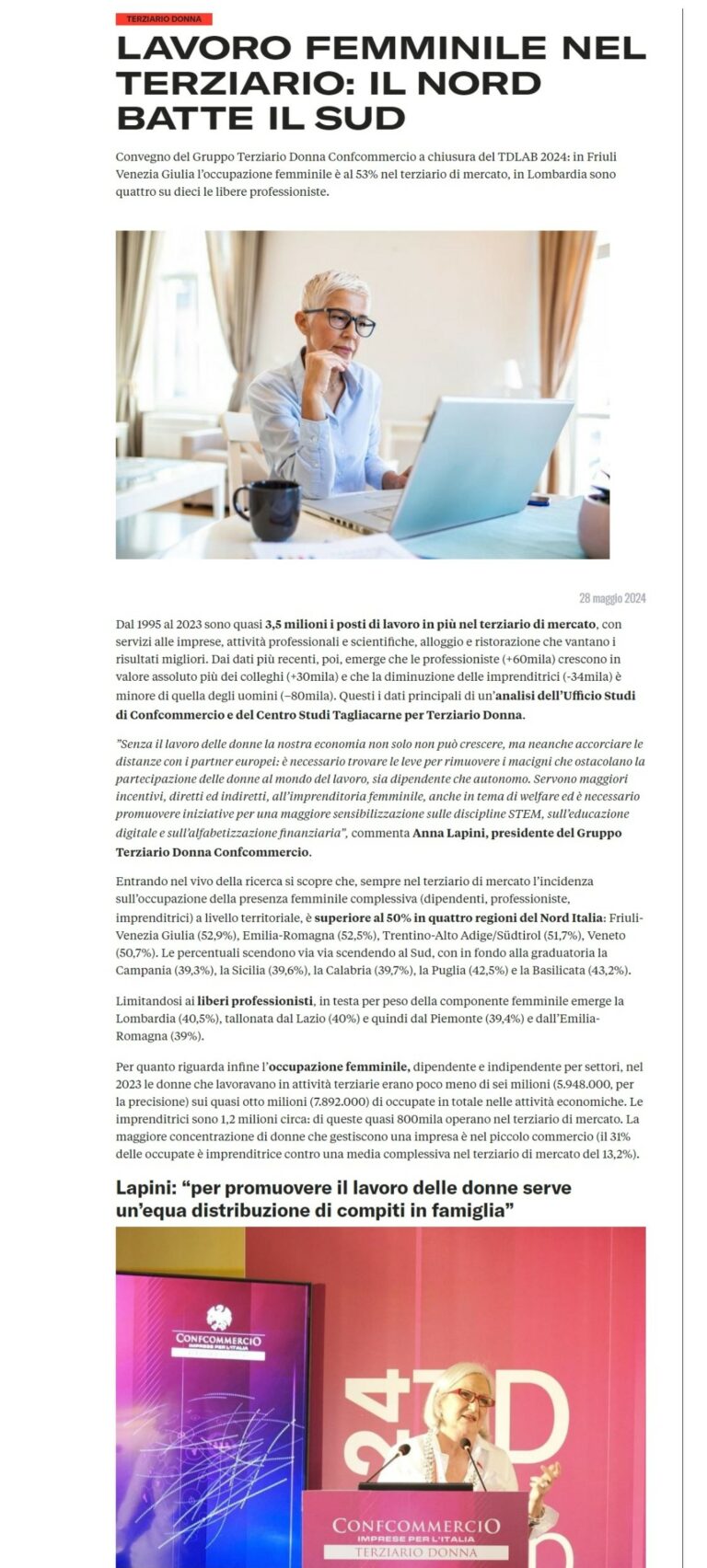 LAVORO FEMMINILE NEL TERZIARIO: IL NORD BATTE IL SUD