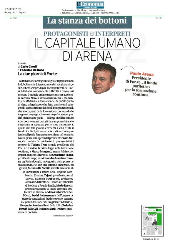 Il capitale umano di Arena Pubblicato il17/10/2022 Protagonisti & Interpreti L’Economia del Corriere della sera – 17 Ottobre Nessun articolo