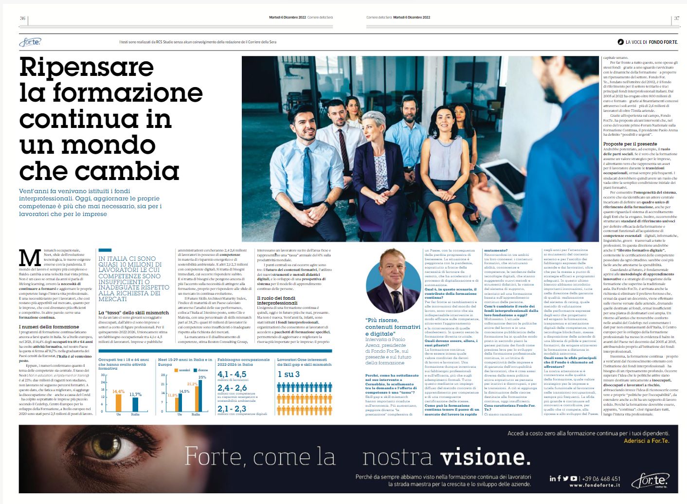 Ripensare la formazione continua in un mondo che cambia Pubblicato il06/12/2022 Corriere della Sera – 6 Dicembre 2022 Formazione cruciale per PMI e lavoratori 05/10/202301/12/2023 Formazione, dote da 1 miliardo. Al centro le competenze digitali 07/12/202201/12/2023 Formazione Continua, la visione di Fondo For.Te. 06/12/202201/12/2023 Qualità garantita con rating, performance e tecnologia 29/11/202201/12/2023 Dossier Formazione Continua – Digitale e ambiente, la transizione è il pilastro della Formazione Continua 29/11/202201/12/2023 Le Competenze Corrette Sono Centrali 29/11/202201/12/2023