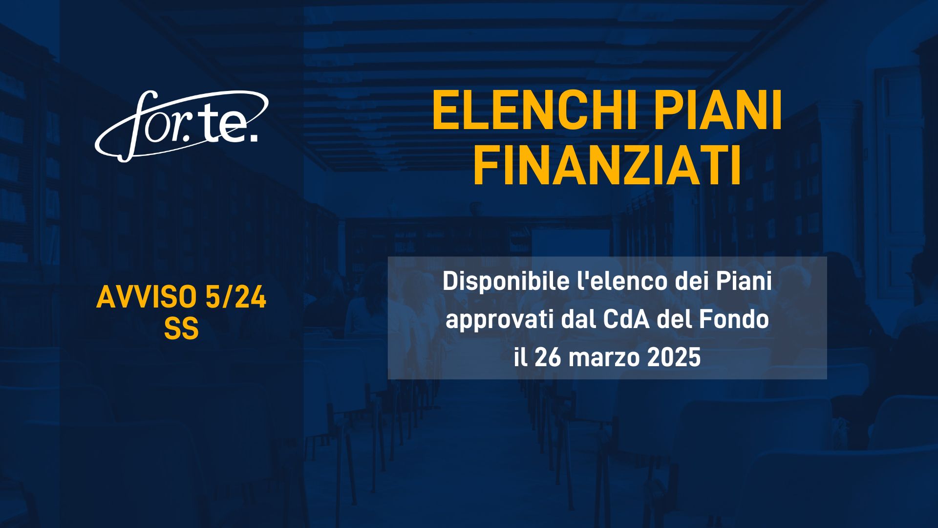 Nella stessa seduta il Consiglio di Amministrazione di For.Te. ha inoltre deliberato il finanziamento a scorrimento dei Piani finanziabili ma non finanziati per esaurimento delle risorse disponibili per lo stesso Avviso.