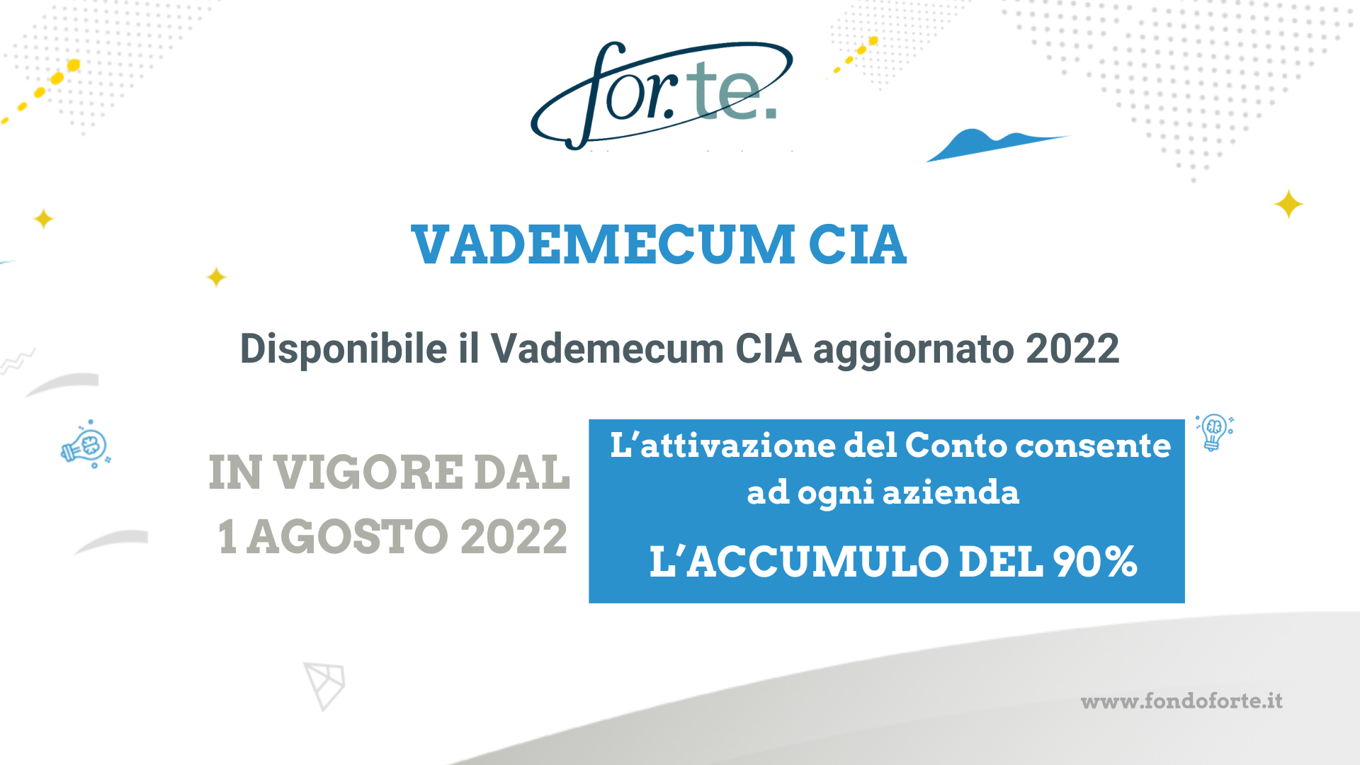 Il Consiglio di Amministrazione di For.Te., nella seduta del 5 maggio 2022, ha approvato il Vademecum operativo del Conto Individuale Aziendale e del Conto di Gruppo, le cui modifiche sono correlate al Regolamento del Fondo approvato dall’ANPAL, con Decreto n.184 in data 4 luglio 2022.
