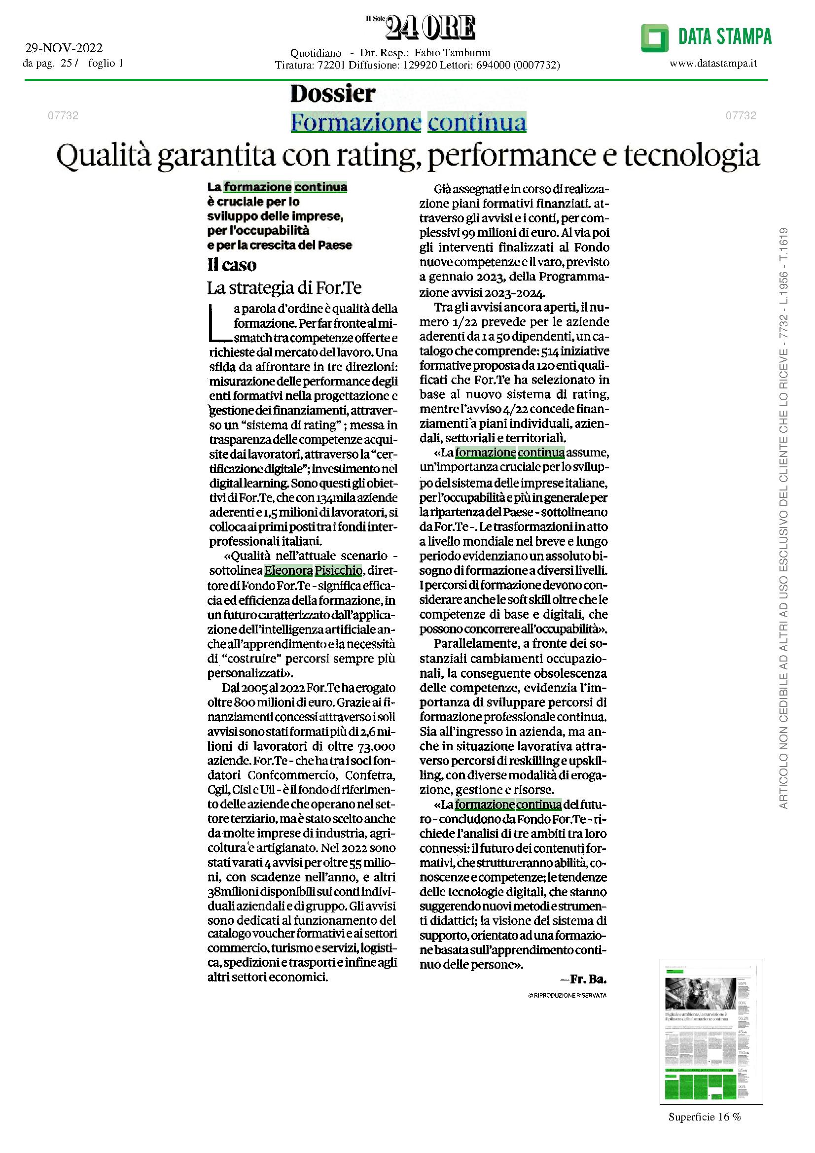 Qualità garantita con rating, performance e tecnologia Pubblicato il29/11/2022 il Sole24Ore – 29 Novembre Formazione cruciale per PMI e lavoratori 05/10/202301/12/2023 Formazione, dote da 1 miliardo. Al centro le competenze digitali 07/12/202201/12/2023 Ripensare la formazione continua in un mondo che cambia 06/12/202201/12/2023 Formazione Continua, la visione di Fondo For.Te. 06/12/202201/12/2023 Dossier Formazione Continua – Digitale e ambiente, la transizione è il pilastro della Formazione Continua 29/11/202201/12/2023 Le Competenze Corrette Sono Centrali 29/11/202201/12/2023