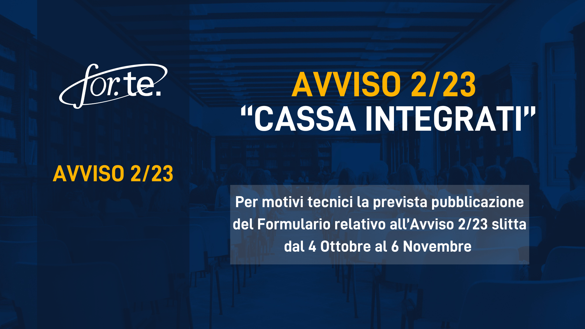 Slittamento pubblicazione Formulario Avviso 2/23 “Cassa Integrati”