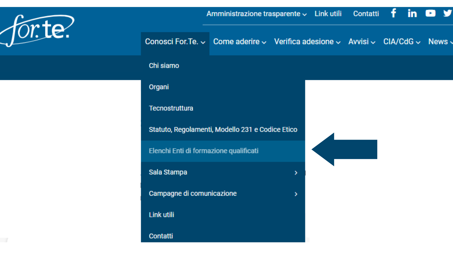 Si informa che la pagina Enti qualificati precedentemente pubblicata nella sezione Avvisi, è ora nella sezione Conosci For.Te. con la nuova denominazione “Elenchi Enti di formazione qualificati“.